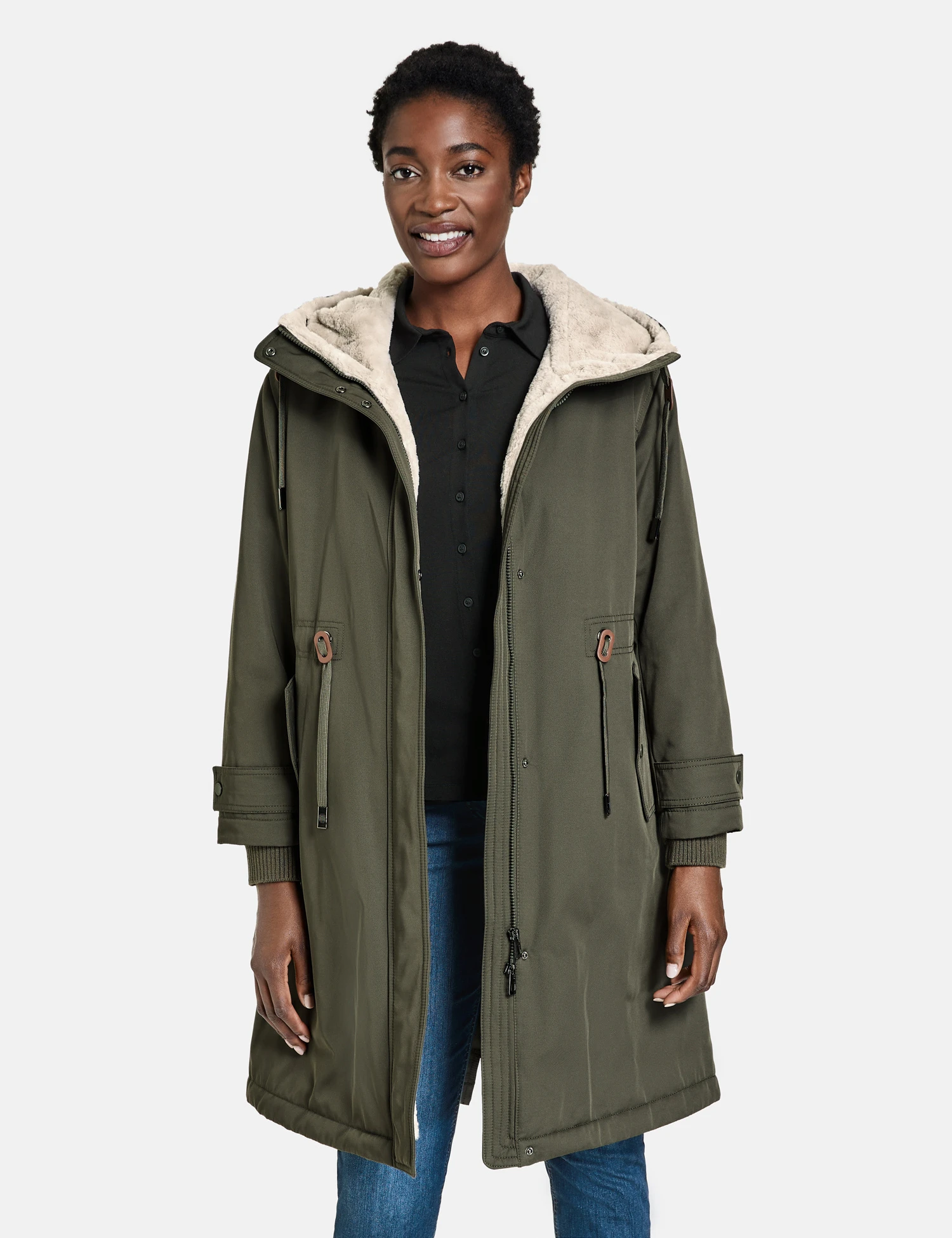 Gerry Weber Mantel Mit Taillen-Tunnelband Und Kunstfell-Besatz